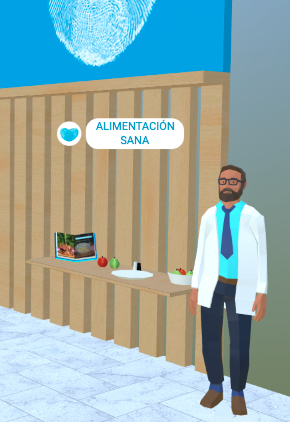 Access to the site was provided through a username and password. We aimed to stand out by creating a 3D booth where a doctor greets visitors and explains the video concepts, along with a downloadable guide on healthy eating.